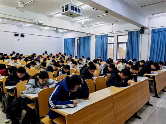 考试期间,同学们自觉遵守考试纪律,全神贯注进行答题,力争发挥出自己最佳水平。监考人员严格履行监考职责,考场井然有序,展现出机械学子认真负责的学习态度和良好的精神风貌。