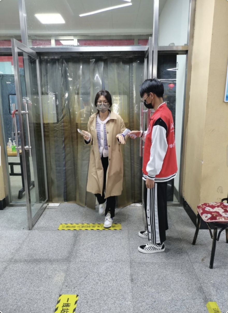 我们的工作是负责为同学们测量体温和监督同学们佩戴口罩。在参加此次志愿活动中,我感触良多。作为一名志愿者,在帮助他人的同时,也让自我通过历练获得成长。与此同时,同学们的积极配合也让我们的志愿工作顺利进行。通过这次志愿活动,我看到了大家团结协作和对疫情不服输的精神,我坚信我们一定能够战胜疫情。