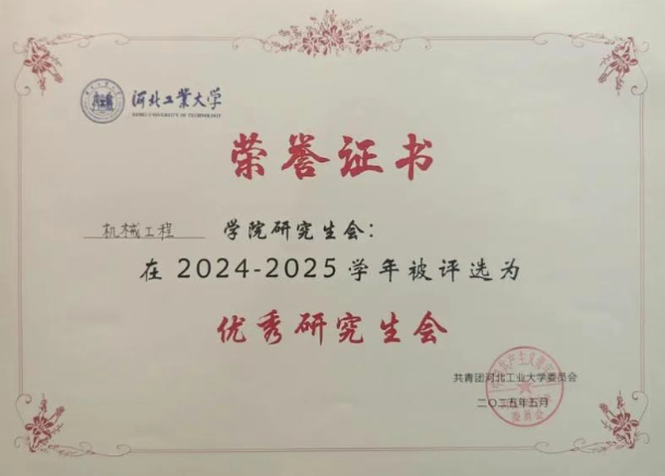 喜报|我院研究生会荣获河北工业大学2024-2025学年“优秀研究生会”称号