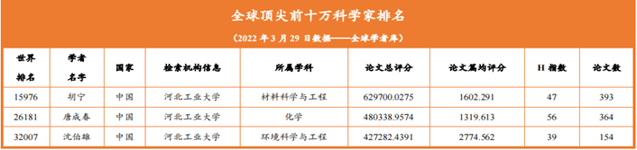 近日,全球学者库网站公布了“全球顶尖前10万科学家”榜单,开云官方网页版官网韩旭、胡宁2位学者入选。