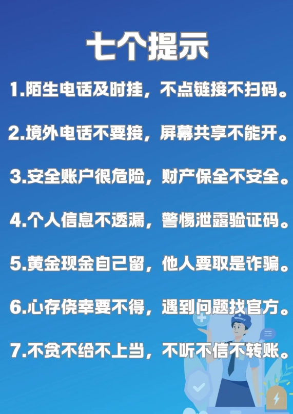 讲座中,陈玥警官用通俗易懂的语言,讲解了当前高发诈骗类型,重点剖析刷单返现、虚构色情服务、网络游戏虚假交易等典型手段。结合发生在学生身边的真实案例,还原诈骗分子作案流程,揭露其套路与隐蔽性、危害性,引导师生认清侥幸心理和防范意识薄弱带来的风险。为帮助同学们快速掌握反诈技巧,陈玥警官还总结了“七个提示”,叮嘱大家牢记践行,筑牢反诈思想防线。