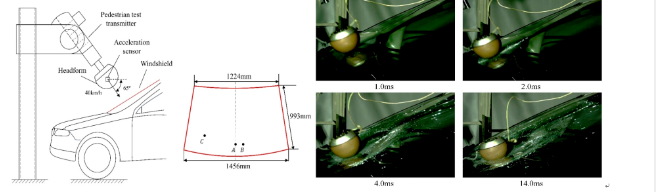 近年来,中国的汽车工业快速发展,截至2023年6月,中国的汽车保有量已超过3.2亿辆。汽车数量的增加也导致了交通事故中汽车碰撞的增加。研究显示,行人头部与汽车挡风玻璃碰撞是交通事故中行人死亡的主要原因之一。为了减少交通事故中行人的伤亡,近年来出台了严格的要求。其中一个关键方面是对假人行人头部与汽车挡风玻璃进行碰撞测试。在碰撞测试中,头部受伤的风险常用头部伤害标准(HIC)值来量化。挡风玻璃中的裂纹发展直接影响了碰撞所造成的加速度,对头部受伤的结果有重要影响。