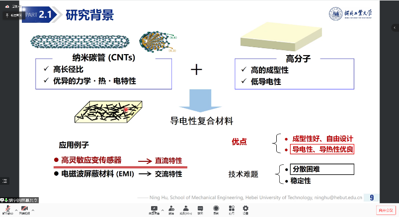 1月20日,空中讲堂系列活动第一讲主讲嘉宾为河北工业大学副校长胡宁教授,报告题目为“纳米添加相/高分子基体系的传感纳米复合材料研究的最新进展”。