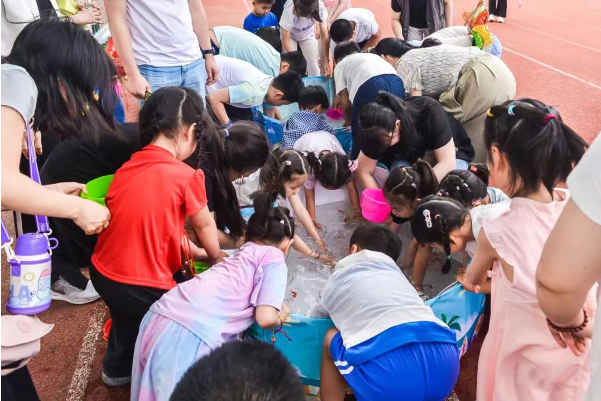 活动设置幸运圈圈圈、乒乓球运输大赛、水枪大作战、零食抢夺战、趣味捞鱼、欢乐草裙舞等环节,现场欢乐不断。