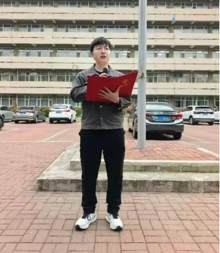 紧接着,学生代表马天发言,号召同学们作为生逢盛世的新青年,要勇担时代重任,艰苦奋斗,埋头苦干,迎接挑战,在自己的研究方向上做出一番事业,为国家的发展奉献出一份力量。