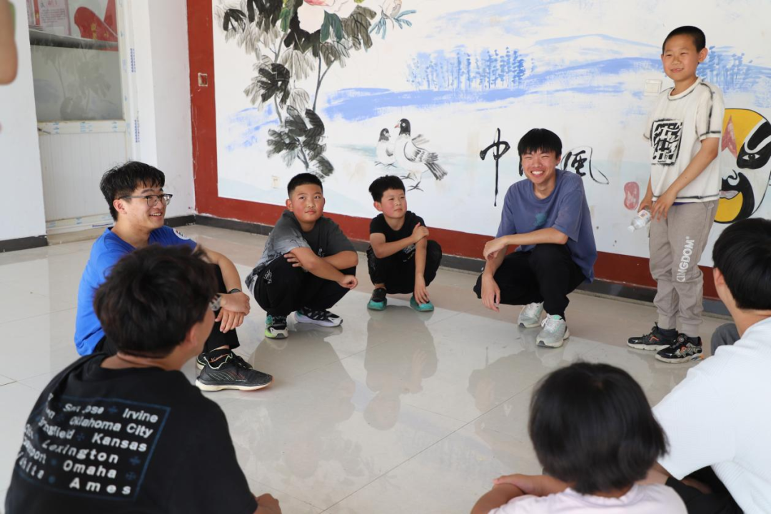 回到村委会,实践队员和村里小朋友进行了深入交流。他们有的和孩子们围坐一起畅聊谈心,聊他们的生活趣事、聊他们的未来梦想;有的加入到孩子们的足球运动中,在球场上和孩子们一起肆意奔跑;有的和孩子们一起玩游戏,木头人、丢手绢……孩子们玩得不亦乐乎,个个脸上挂着甜甜的笑容。年复一年的坚持,让孩子们感受到陪伴,看着这些孩子们一点点的长大,实践队员心中也有着满满的欣慰与自豪。