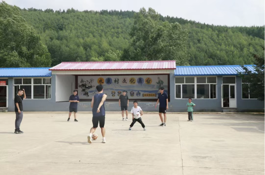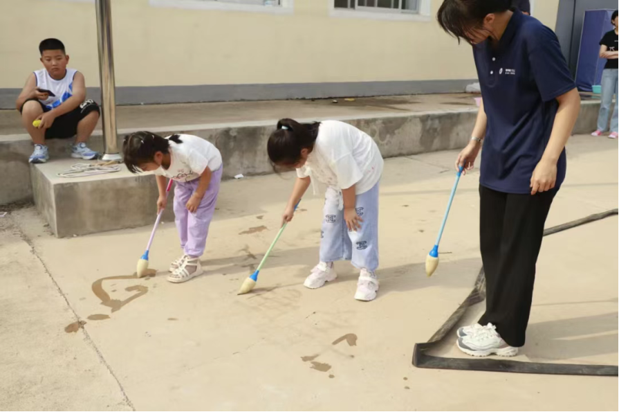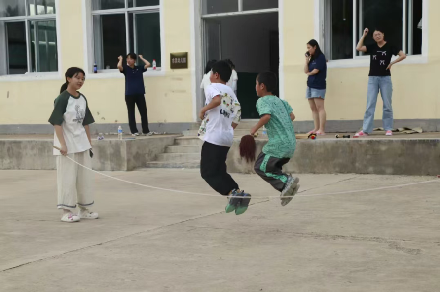 午后的阳光洒大地,队员们与村里的孩子们开启了一场欢乐之约。跳绳翻飞、足球滚动、沙包起落,孩子们的欢笑声像一串串清脆的风铃,在耳畔回荡。实践队员与孩子们奔跑嬉戏,零距离的陪伴让心与心的距离悄然拉近。