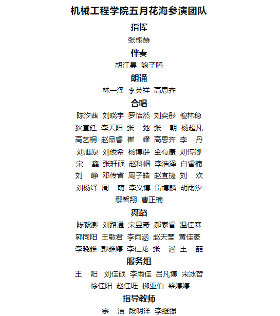 为赓续五四精神薪火,厚植家国情怀,营造昂扬向上的校园文化氛围,我院积极响应校团委号召,组织参与“五月的花海”第十五届大学生合唱比赛。5月9日下午,比赛于大学生活动中心世纪礼堂隆重举行。学院选送朗诵《我的名字》、合唱《无名的人》及主题舞蹈,以深刻立意与精湛演绎征服全场,从18支参赛队伍中脱颖而出,荣获团体一等奖与最佳组织奖!
