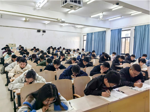 考试期间,同学们自觉遵守考试纪律,全神贯注进行答题,力争发挥出自己最佳水平。监考人员严格履行监考职责,考场井然有序,展现出机械学子认真负责的学习态度和良好的精神风貌。