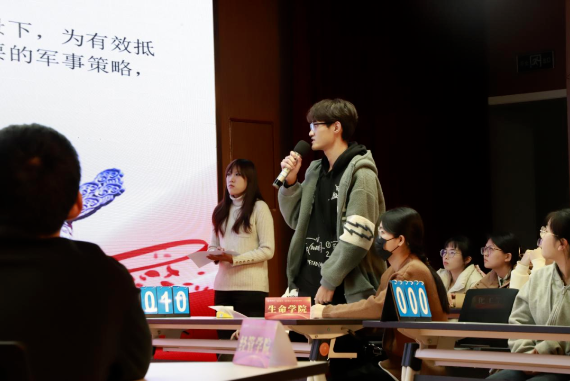 决赛环节,来自人文与法律学院、人工智能与数据科学学院、土木工程与交通学院、经济管理学院、生命科学与健康工程学院、理学院、化工学院、开云官方网页版官网的8组选手,通过必答题、抢答题、风险题、一题决胜等环节进行激烈角逐,现场300余名观众积极参与,气氛热烈。