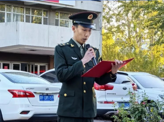 随后,党委书记杨占力讲话,他指出:国防是国家生存与发展的重要保障,是每一个公民的责任和义务。每一位同学都应把国防意识培养融入日常学习和生活中,为国家的繁荣富强贡献力量。