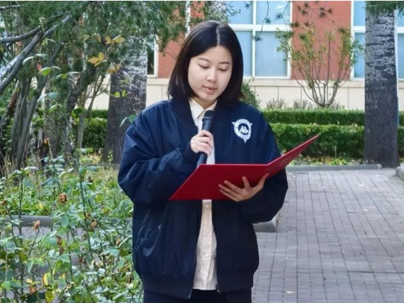 紧接着,研究生退伍士兵崔晋铖同学发言。他回顾了自己的军营生活,让同学们感受到了他的成长蜕变。昨日,他在军营里为国家的国防事业奉献力量,彰显青年担当;今朝,他回到校园,传递国防知识,展现青年风采。