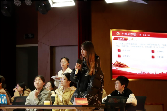 决赛环节,来自人文与法律学院、人工智能与数据科学学院、土木工程与交通学院、经济管理学院、生命科学与健康工程学院、理学院、化工学院、开云官方网页版官网的8组选手,通过必答题、抢答题、风险题、一题决胜等环节进行激烈角逐,现场300余名观众积极参与,气氛热烈。