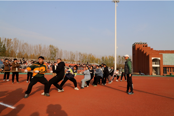 体育场上,双龙接力、珠落玉盘、绳舞祥云、接龙行、齐心绘锦、连心接力、云锦渡元、拔萃山河共八个项目正在火热地进行。拔河赛场,一根麻绳凝聚着团队的力量;连心接力中,两块木板,承载着集体的荣光,双龙接力间,十人齐踏向前方;绳舞祥云中,每次弹跳都奏响着胜利的乐章。