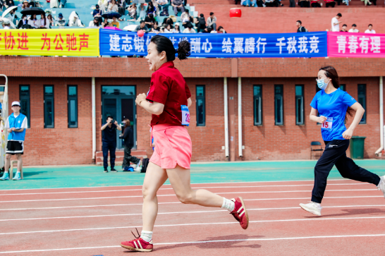 赛道上,平日里手持粉笔的老师们摇身一变,成为了赛场上的追风者。他们步伐矫健,身姿轻盈,每一步都充满力量,用汗水诠释着坚持与毅力。