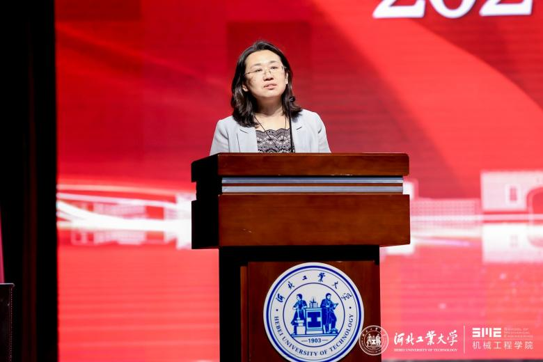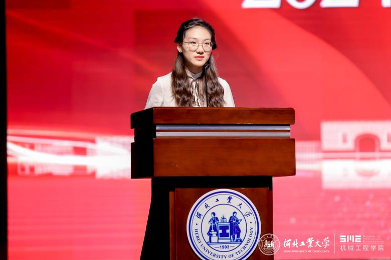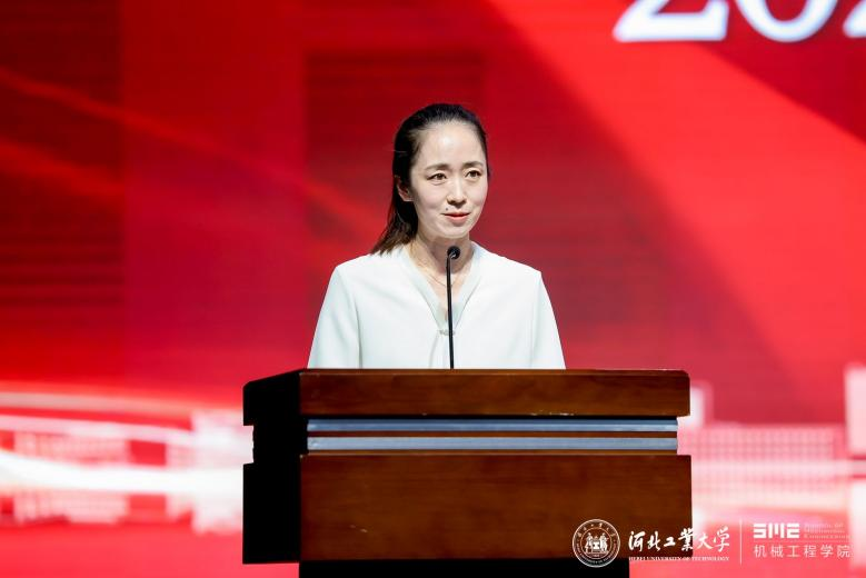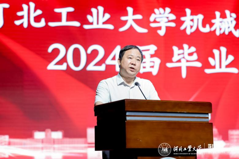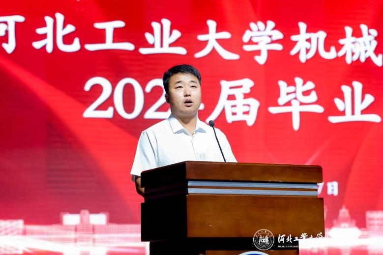 校友代表机电954班母彩军表示毕业晚会是同学们共同回忆和展望未来的时刻,愿学弟学妹们勇敢迎接挑战,实现梦想,成为社会的栋梁之才,河北工业大学天津校友会机械分会欢迎同学们的加入。