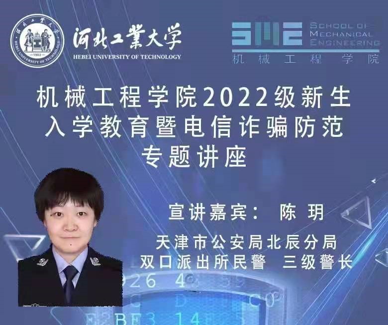 为提高新生防范电信网络诈骗意识,保护学生人身财产安全,2022年9月24日晚19:00在线上开展2022级新生入学教育暨电信诈骗防范讲座。活动采用多会场同时进行的形式,全院共计900余名师生参加,本次讲座由天津市公安局北辰分局双口派出所三级警长陈玥警官主讲。