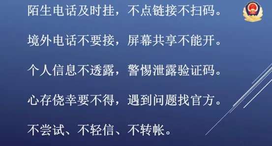 最后,陈警官叮嘱各位同学要做到“不尝试、不轻信、不转帐”,注意自身财产信息安全,为自己负责、为家人负责。
