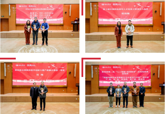 表彰环节中,学院对2024年度在科研经费到账、教学创新大赛等方面取得优异成绩的教职工进行了表彰。刘今越等三位教师2024年度科研经费到账名列前茅;欧阳衡老师入选第十届中国科协青年人才托举工程项目;刘海老师获得第四届全国教师教学创新大赛产教融合赛道一等奖;“智能网联汽车智慧教学平台建设与实践”项目组荣获教育部第二批“人工智能+高等教育”应用场景典型案例。