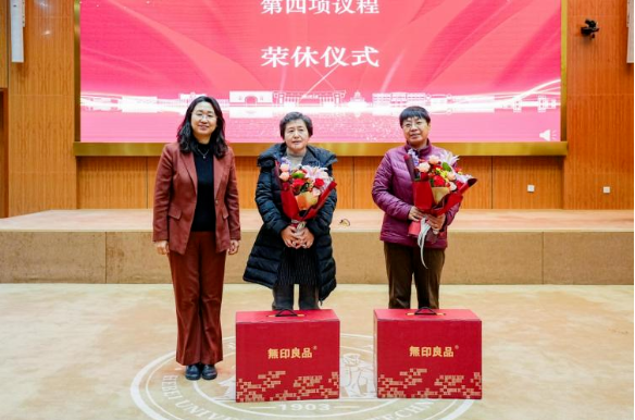 随后,党委书记杨占力主持荣休仪式,对荣休教师为学院发展的积极贡献表示肯定,表达了对荣休教师的美好祝愿。院长赵丽滨为荣休教师献上鲜花,颁发纪念品。荣休教师代表刘淑英老师在讲话中表达了对学校、学院以及同事们的感激,分享了退休后的生活感悟,她表示:虽然退休了,但将继续贡献自己的力量,关注和支持学院的发展。