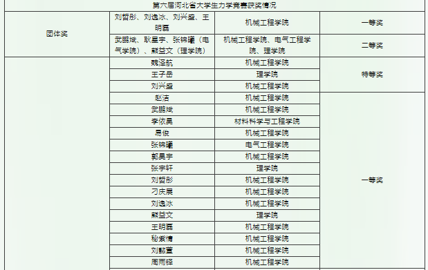 8月21日,第六届河北省大学生力学竞赛“理论设计与制作”团体赛在石家庄铁道大学举行,开云官方网页版官网2支代表队参加比赛,获河北省团体一等奖1项,团体二等奖1项。此前学院组织校内学生参加第六届河北省大学生力学竞赛个人赛,获得特等奖3项,一等奖15项,二等奖25项,三等奖26项,创历史最好成绩。