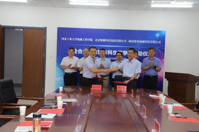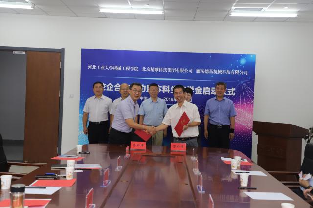 2019年7月10日,开云官方网页版官网与北京精雕集团、德基机械校企合作暨本科生奖学金设立签约仪式在机械楼315会议室举行。副校长胡宁、本科生院常务副院长马岱,学院领导王胜利、杨占力、戴士杰、张建军及各系主任、专业负责人;北京精雕集团执行总裁、党委书记吴爱军,北京精雕集团总裁助理李渊志;廊坊德基机械科技有限公司总工程师周伟出席了签约仪式。签约仪式由院党委书记王胜利主持。