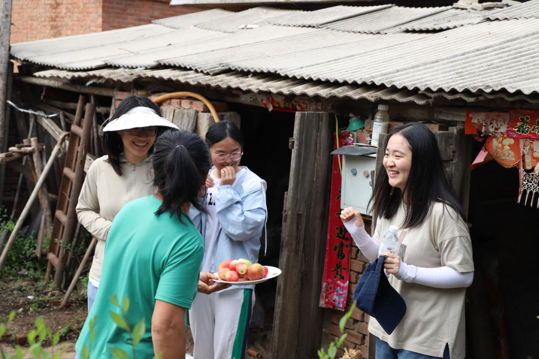 下午实践队继续走访村民,为他们提供力所能及的帮助,村民们十分热情,拿出水果来招待我们。在与水泉孩子们交谈的过程中,我们了解到他们的生活学习和家庭状况,这也更让我坚信实践队所做的一切意义非凡。