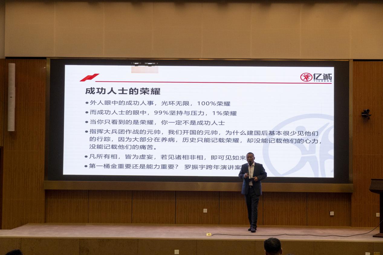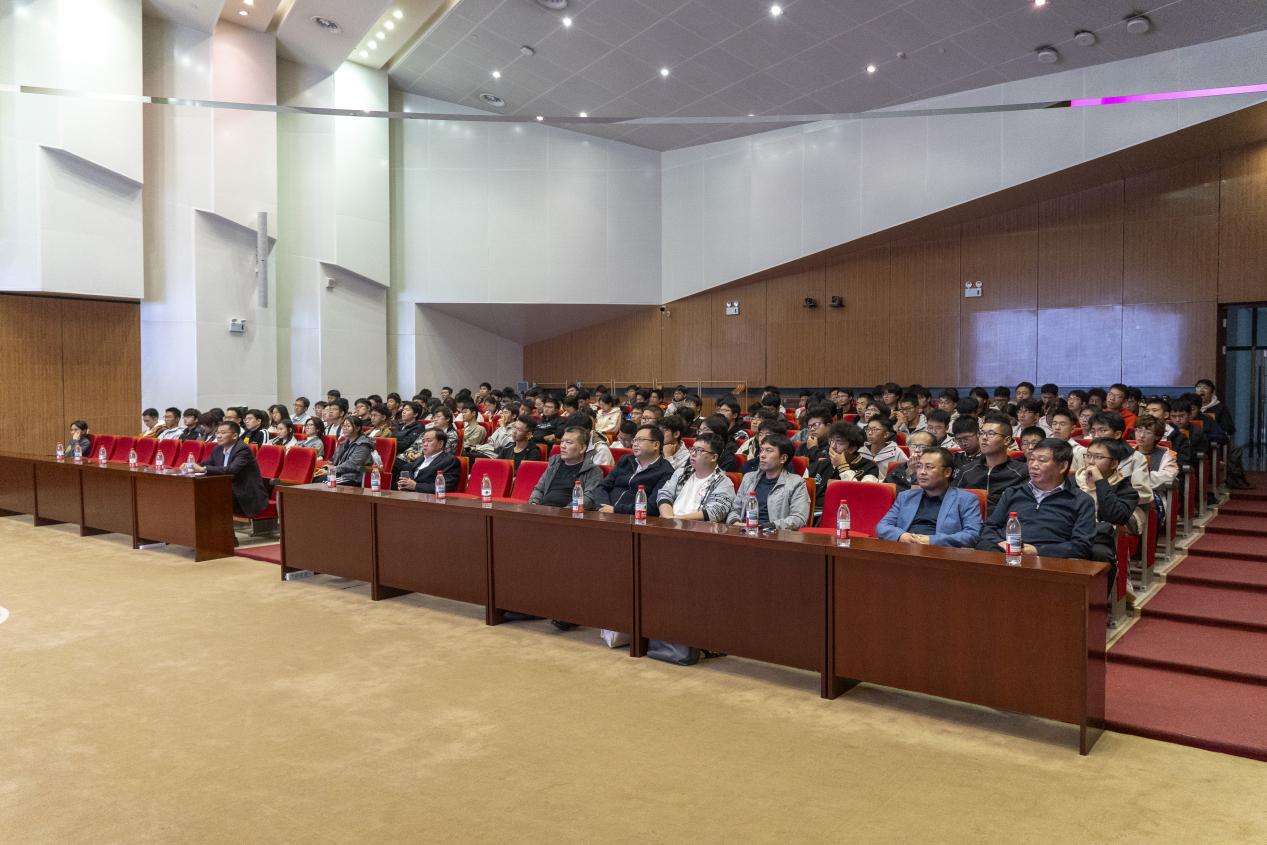 邢建海校友(亿诚集团董事长)以《入社之初》为题,结合创业历程,阐释职业素养塑造与人生目标确立的实践路径;张伟楠校友(森普特科技总经理)围绕《20年,人生半途:事业和家庭》,讲述从国防生到创业者的转型之路,分享事业与家庭平衡的人生智慧;李卓男校友(天创科工总经理)以《AI赋能大学生创新发展》为题,聚焦人工智能前沿,鼓励学子投身科创实践、把握时代机遇。
