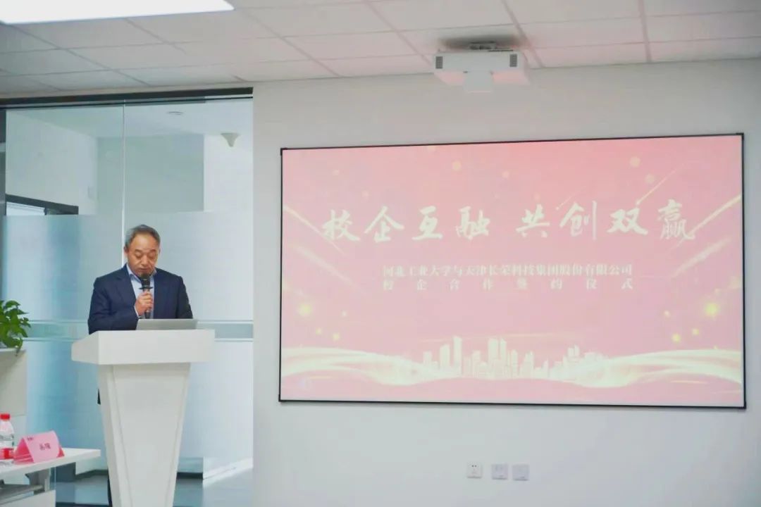 张子珅代表长荣集团对校方一行的到来表示热烈欢迎,重点介绍了长荣集团企业文化、宗旨、核心产品以及研发能力等方面情况。他表示河北工业大学是一座底蕴深厚的“双一流”高校,在人才培养、学科建设、科学研究和成果转化方面起到了表率作用。近年来,学校在服务社会和产业发展的同时,办学实力不断提升,受到社会各界的广泛认可。他希望此次校企间的交流,能够围绕技术需求与学科特色继续深化展开,探索出科研合作的新模式与新路径。