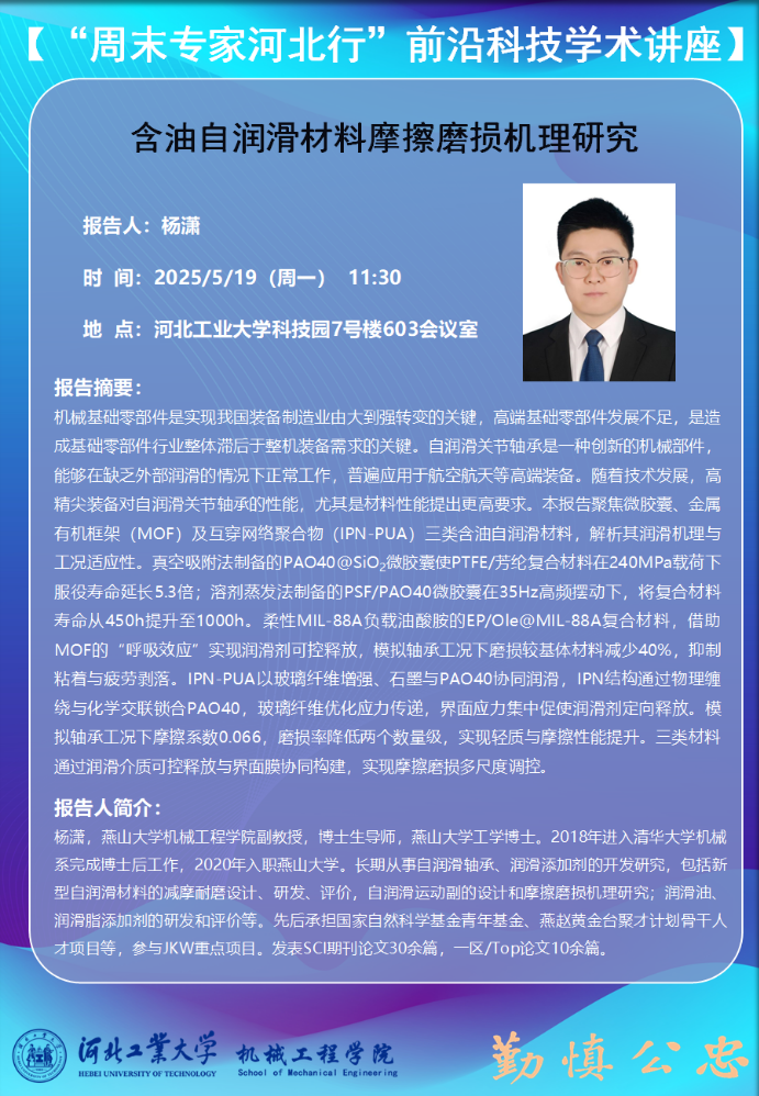 “周末专家河北行”前沿科技学术讲座-含油自润滑材料摩擦磨损机理研究